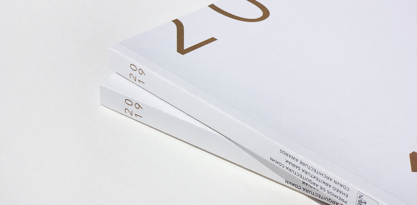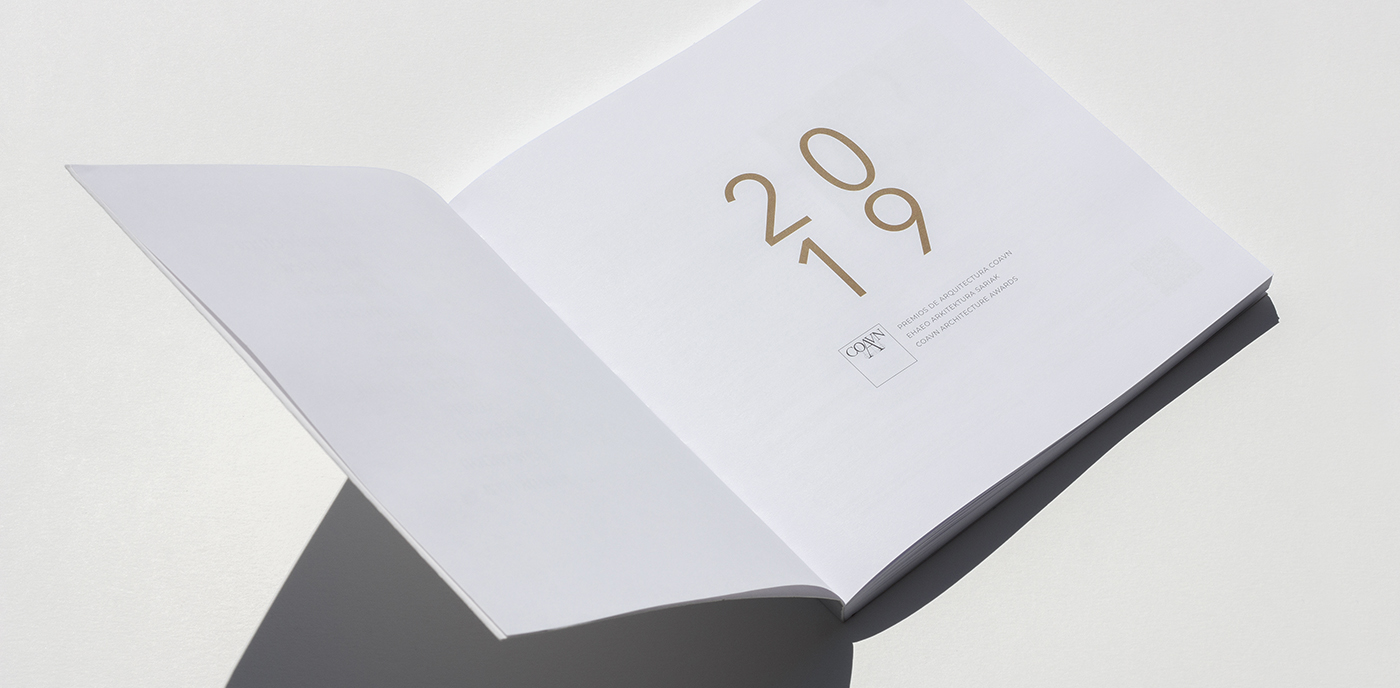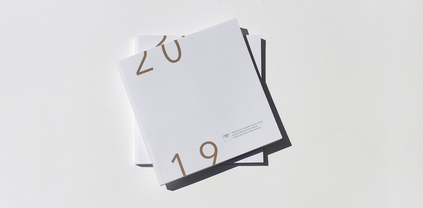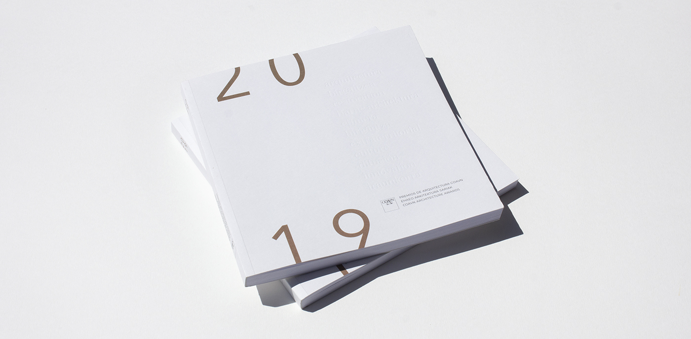 Para la edición de 2019 se diseña un catálogo con el TACTO y la VISTA como protagonistas. Un catálogo que transmite a través del relieve y las texturas del papel, sencillo y claro a la vista. La cubierta, en papel de algodón con una suave textura rugosa, toma volumen con un texto en bajorrelieve con palabras y conceptos que hacen referencia a las modalidades de los premios en los tres idiomas en los que se publica el catálogo, utilizados aleatoriamente.