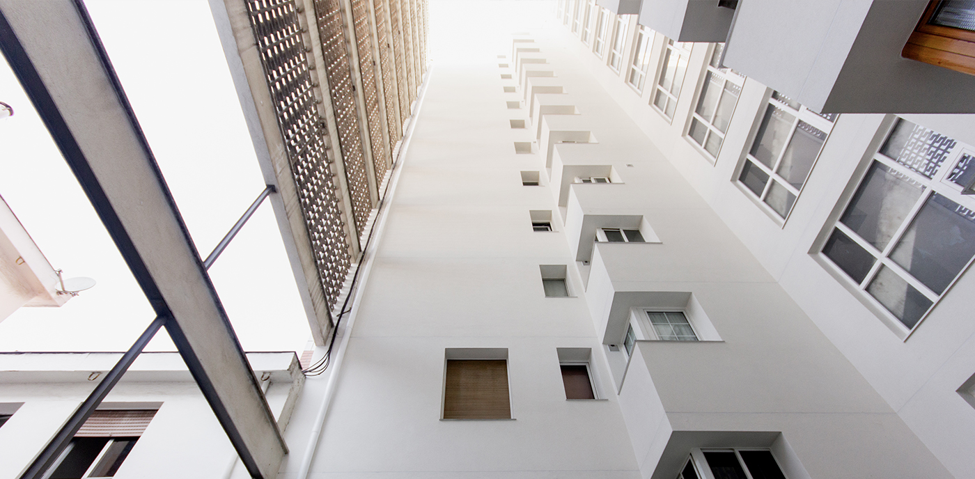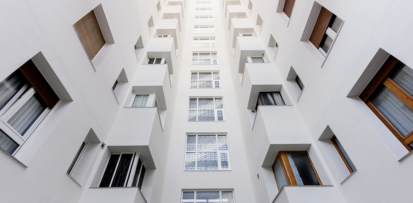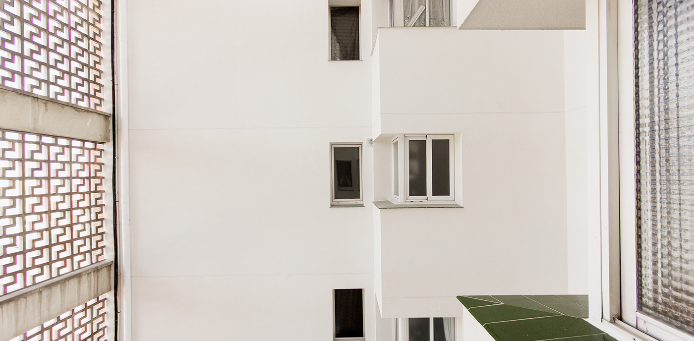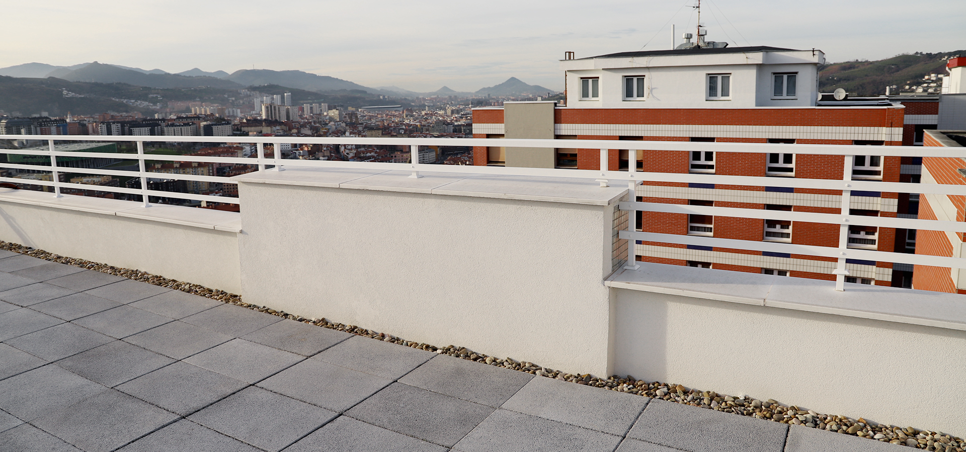 Proyecto de ejecución, dirección de obra y coordinación de seguridad y salud para la rehabilitación energética de las fachadas de los patios interiores del inmueble situado en Santutxu 28, originalmente terminadas en enfoscado y pintura, mediante instalación de fachada SATE, así como rehabilitación de la azotea, sustituyendo embaldosado cerámico por losa filtrante con aislamiento incorporado. Se renuevan también las ventanas del núcleo de comunicaciones y se instalan barandillas, escalera y línea de vida para labores de mantenimiento en la azotea.